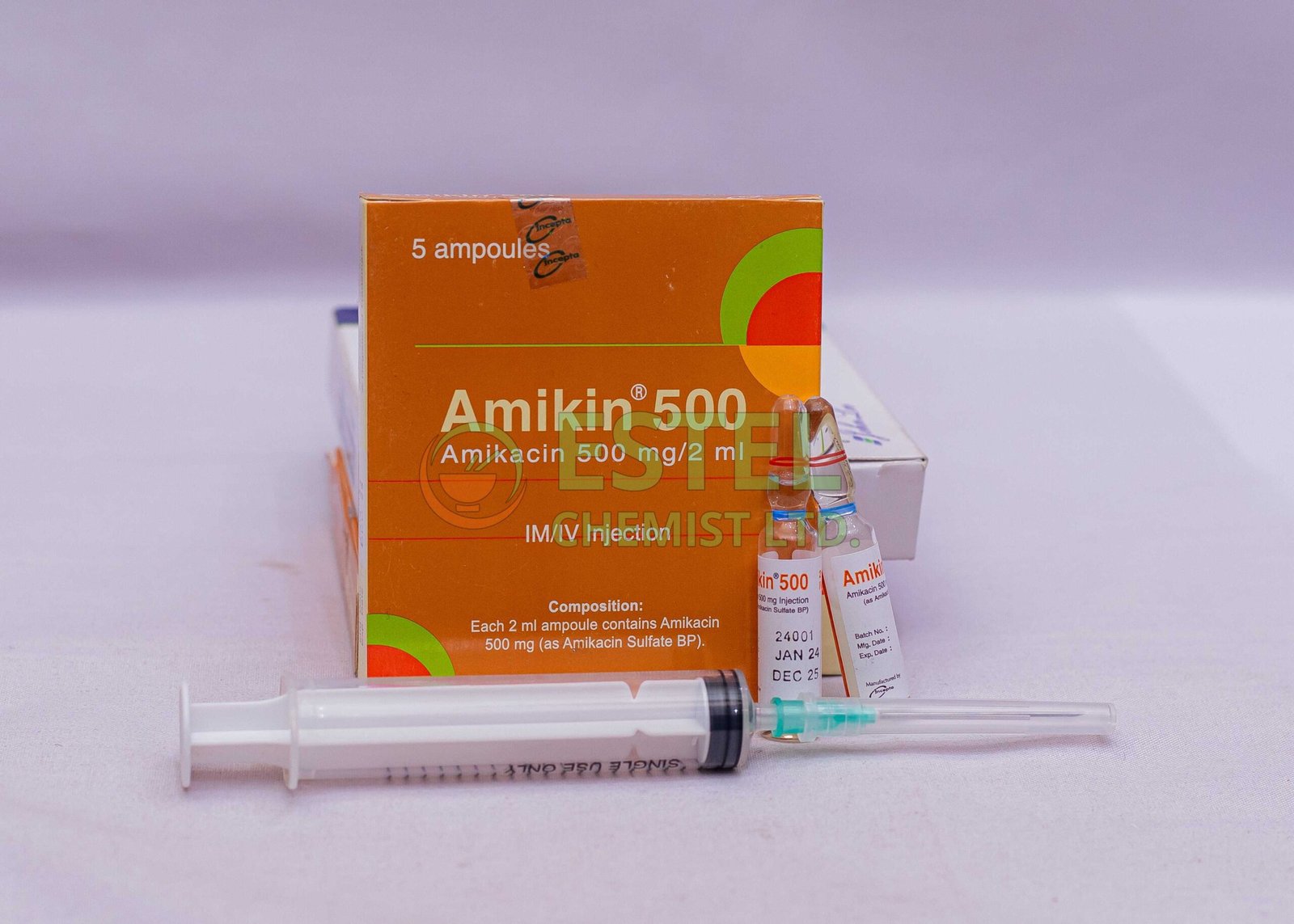 Amikacin Injection 500 mg is a powerful broad-spectrum antibiotic used to treat serious bacterial infections. It belongs to the aminoglycoside class of antibiotics and contains the active ingredient Amikacin, which works by inhibiting bacterial protein synthesis, thereby stopping the growth and multiplication of bacteria.