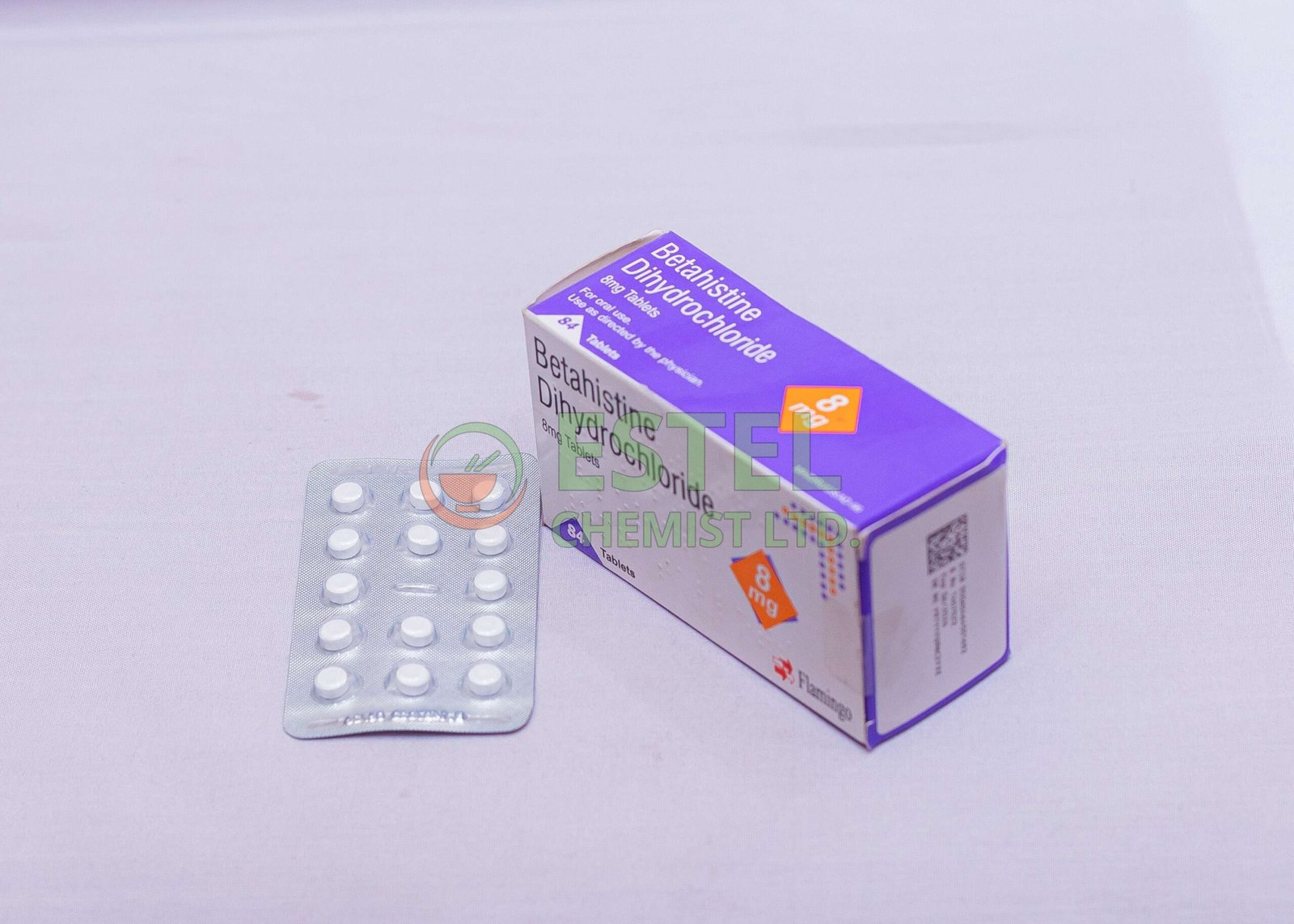 Betahistine 8mg tablets are used under medical supervision to manage vestibular system-related symptoms aiming to improve patient quality of life.