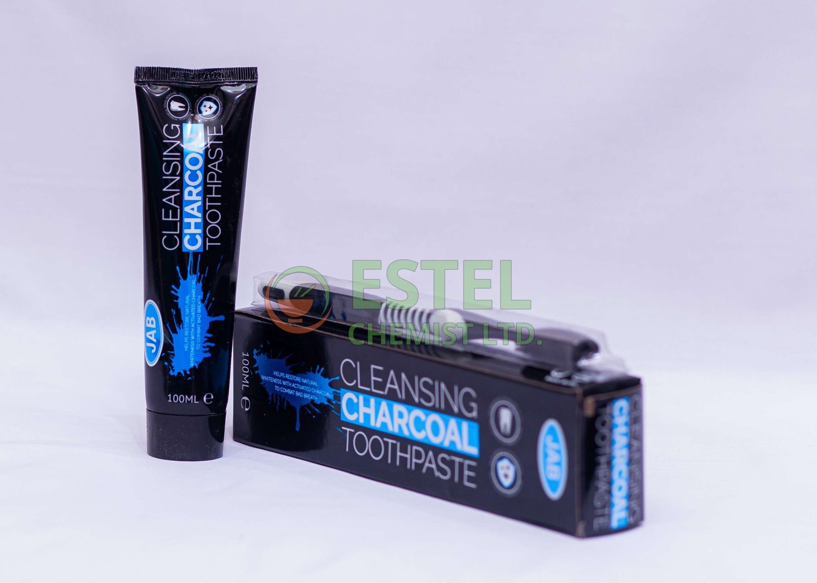 JAB Charcoal Toothpaste + Toothbrush is an oral care set designed to help maintain good dental hygiene while promoting cleaner and brighter teeth. The toothpaste typically contains activated charcoal, which helps remove surface stains and impurities from the teeth, while the included toothbrush assists in effective plaque removal and daily oral cleaning.