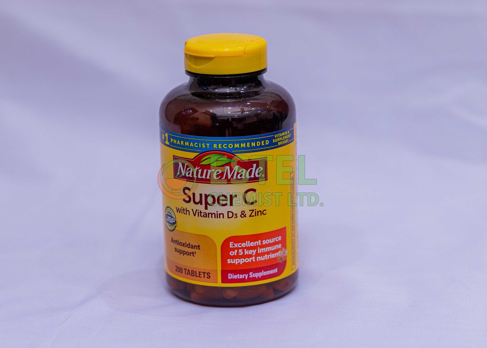 NATURE MADE SUPER C + VITAMIN D 200’S is a supplement designed to boost immunity, provide antioxidant support, and promote bone health when used as directed.