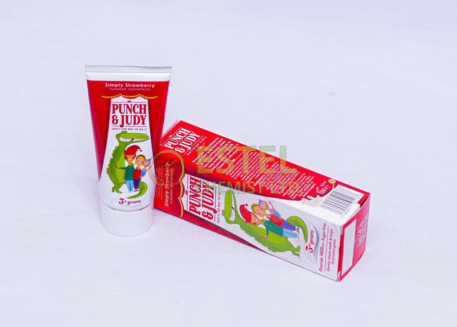 PUNCH AND JUDY TOOTHPASTE 50 ML is a fluoride-based toothpaste designed to maintain oral hygiene, protect against cavities, and promote healthy teeth and gums when used regularly.