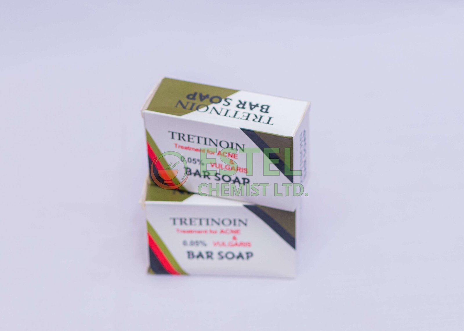 Tretinoin Soap is a medicated cleansing bar used in the management of acne and certain skin conditions. It contains the active ingredient Tretinoin, a derivative of vitamin A that helps promote skin cell turnover, unclog pores, and reduce the formation of acne lesions.